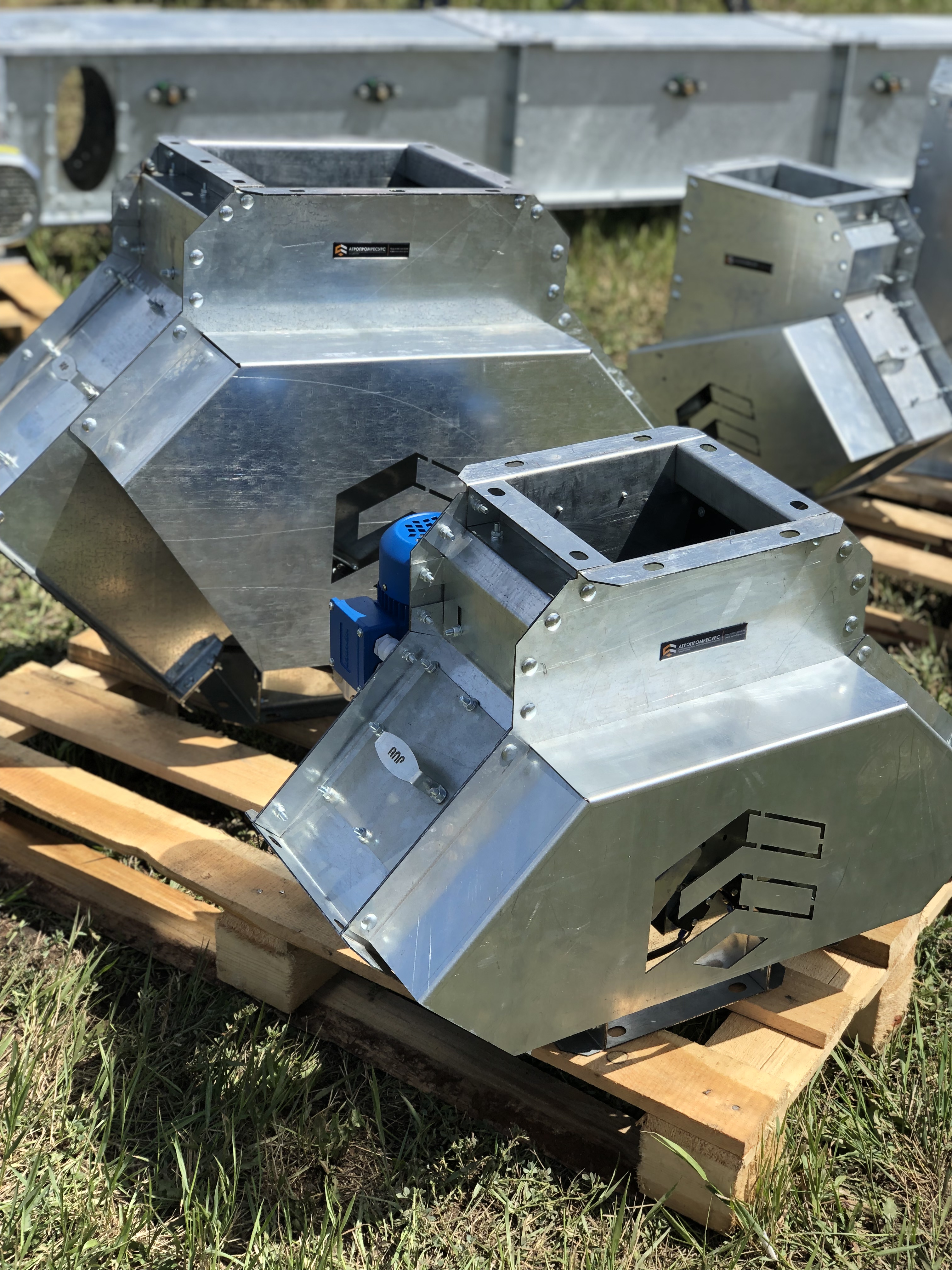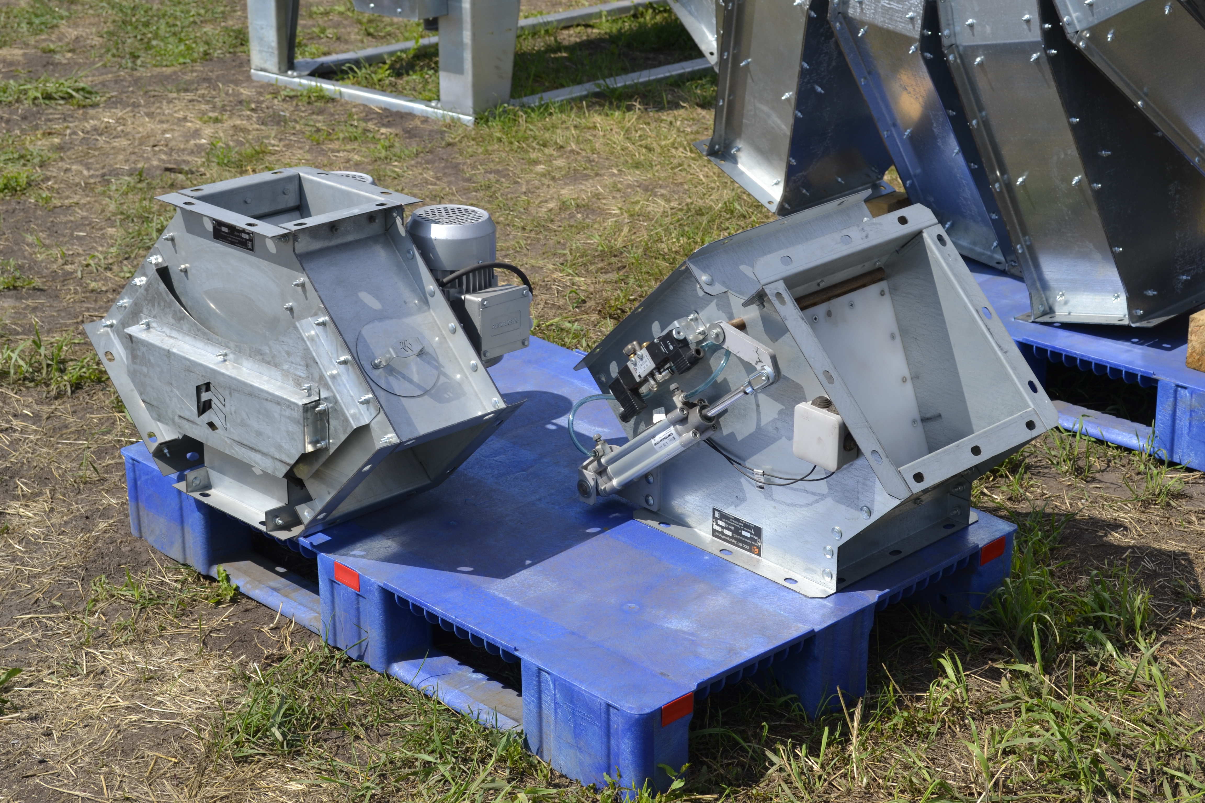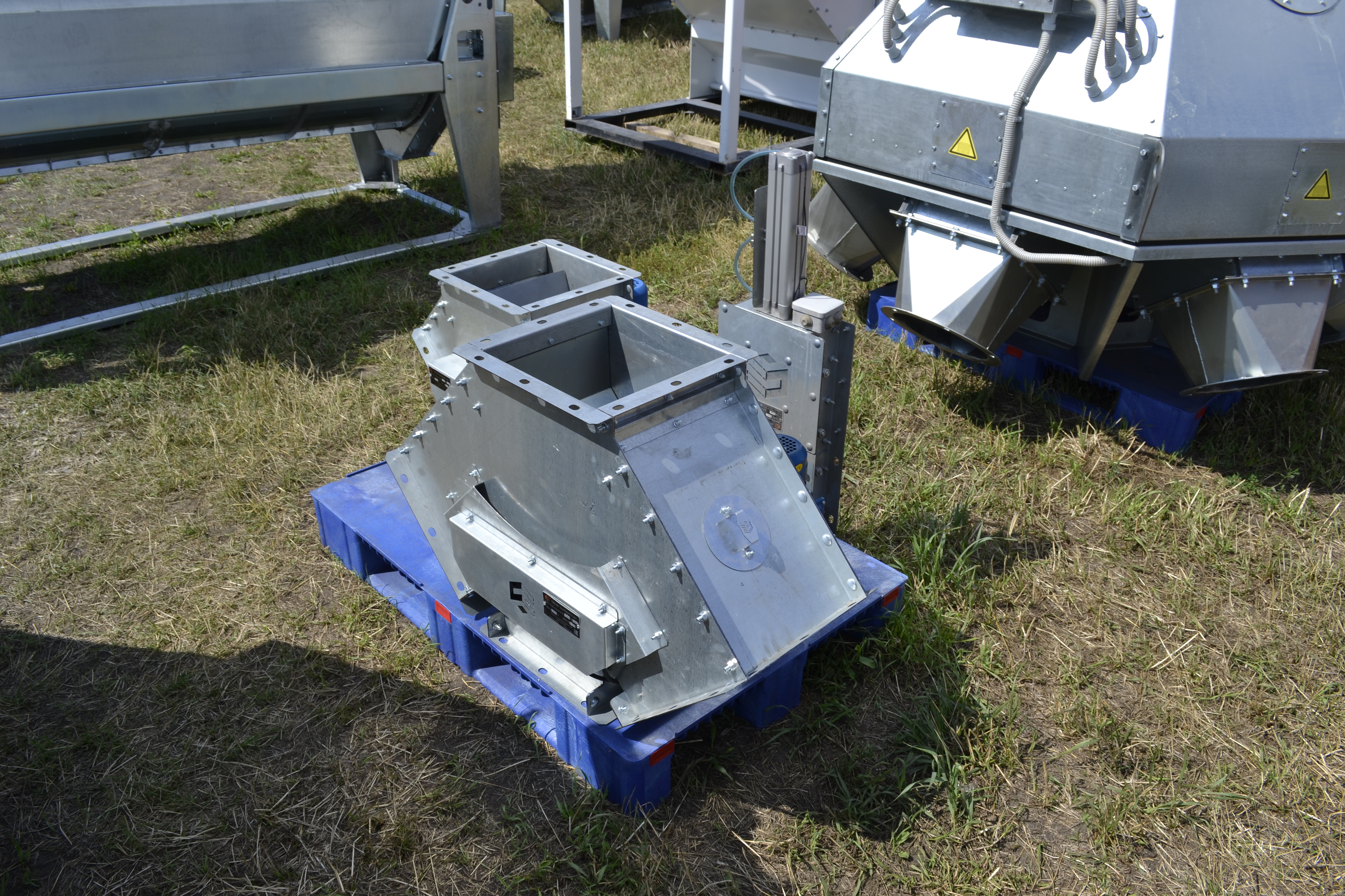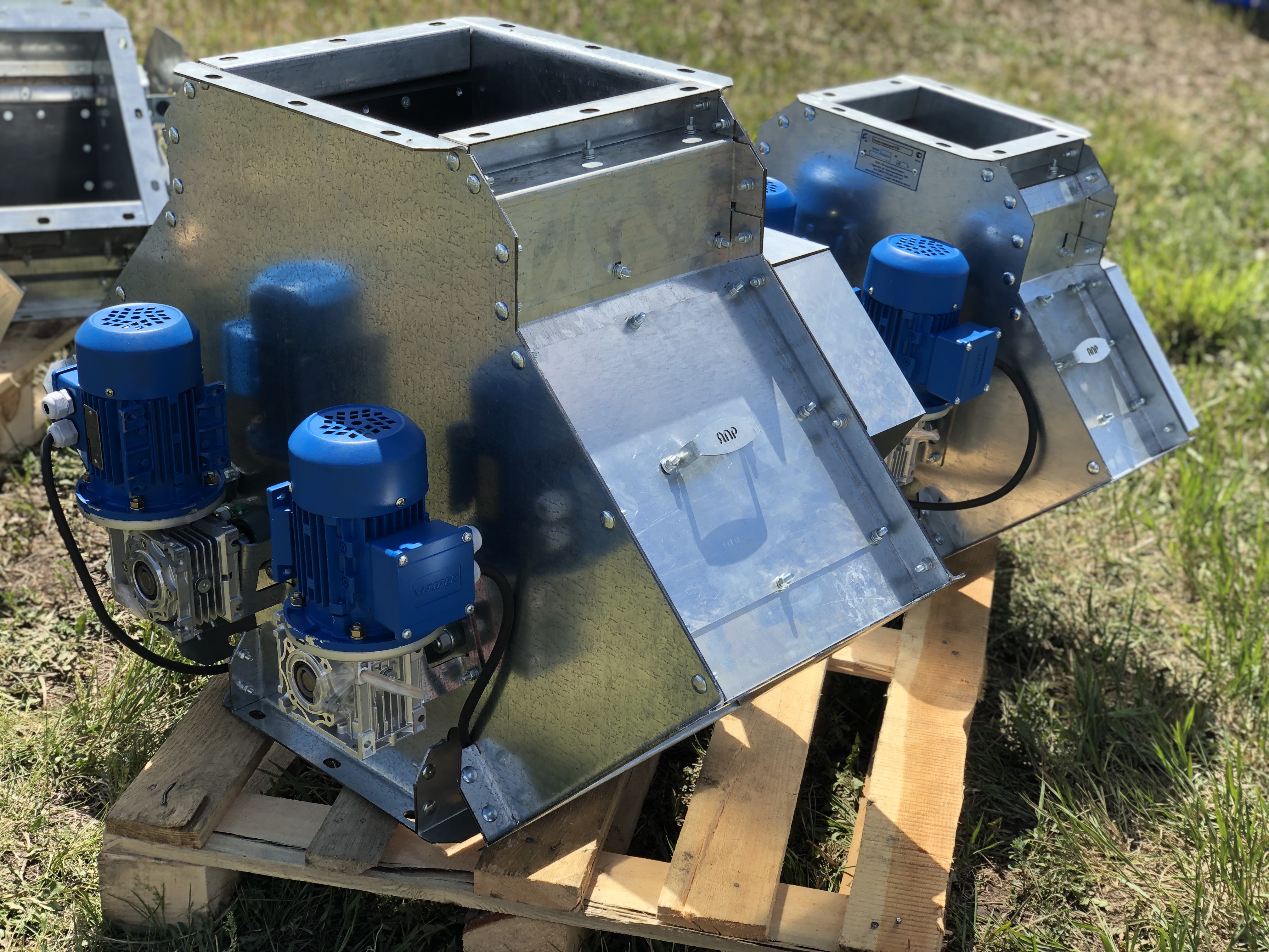 Предназначены для изменения направления движения продукта в системах самотечного транспорта. Имеют квадратное сечение, для крепления к самотекам используются переходные патрубки с круглым фланцем под болтовое соединение или хомут. Данные клапаны могут направлять продукт по одному из трех направлений. Бывают с электрическим или ручным приводом.