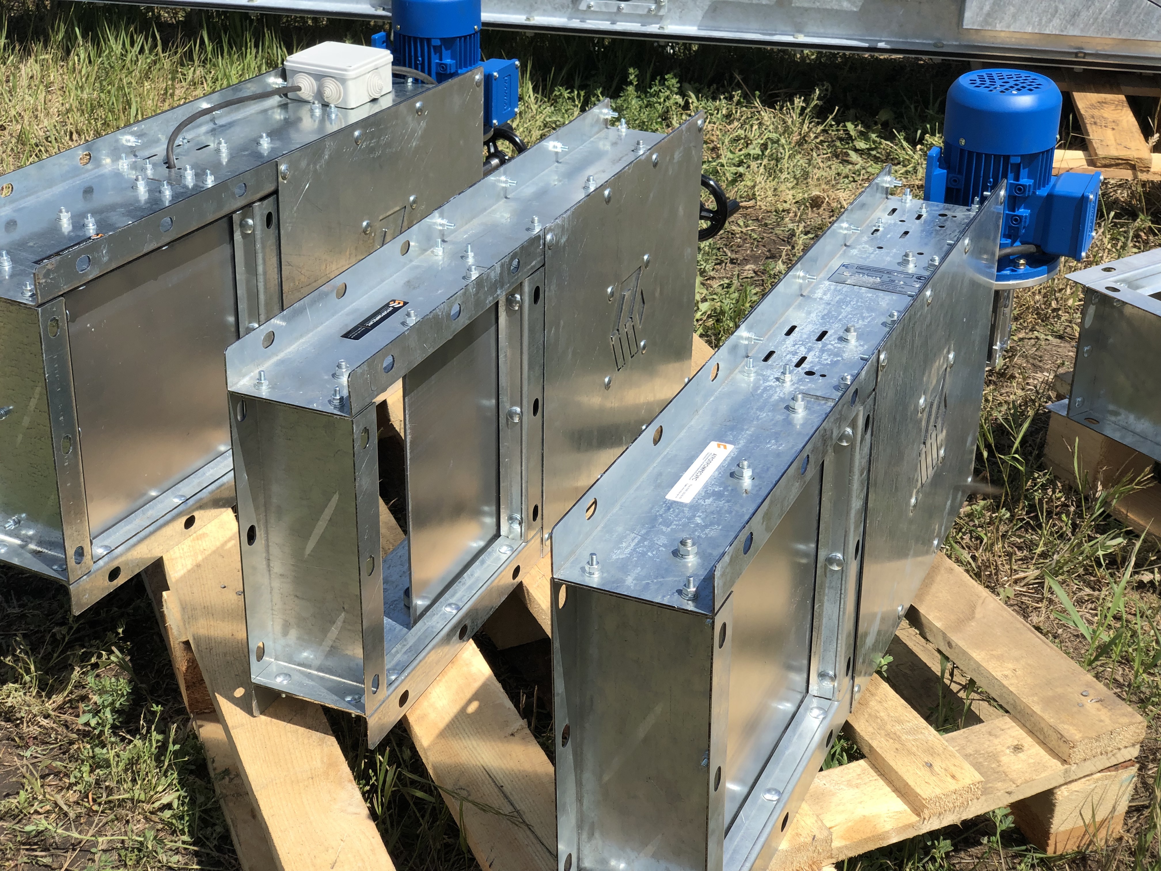 Задвижки используются в качестве запорных устройств, для ограничения сыпи продукта а также его дозирования. Имеют достаточно простой конструктив. состоящий из корпуса, шибера и механизма, приводящего шибер в движение. В случае с электрическими задвижками - это мотор-редуктор. Крайние положения шибера регулируются концевыми выключателями механического или индуктивного типа.